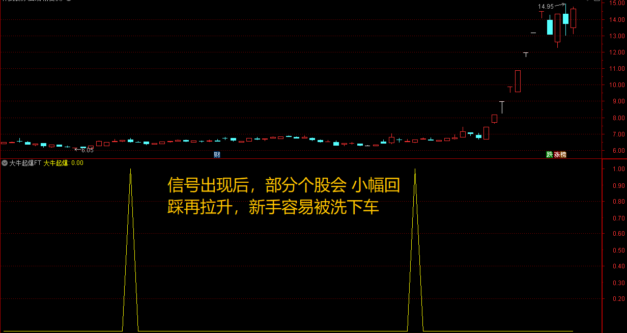 (通达信大牛起爆指标,捕捉个股【主力控盘启动 + MACD 多头趋势 + 短期强势】的低位大牛股起爆点)