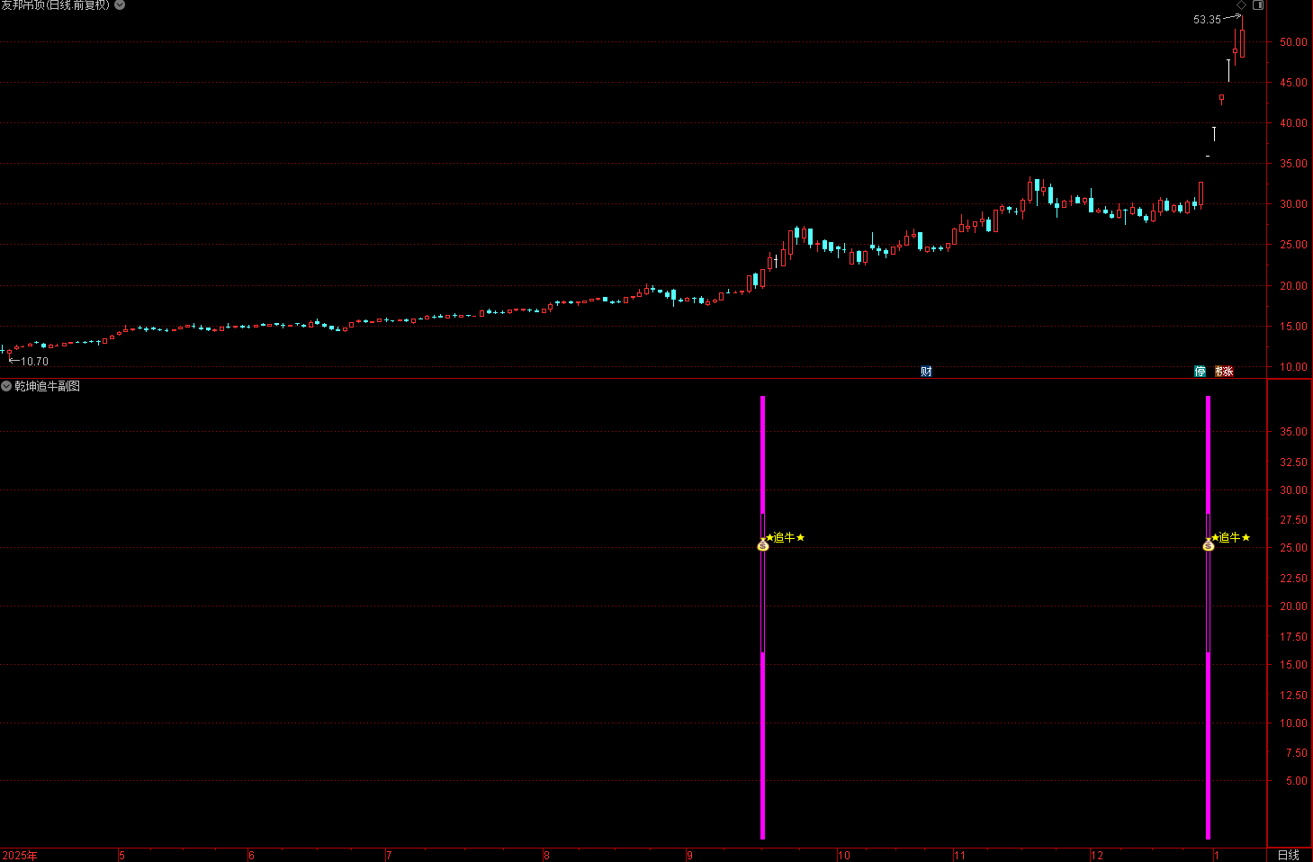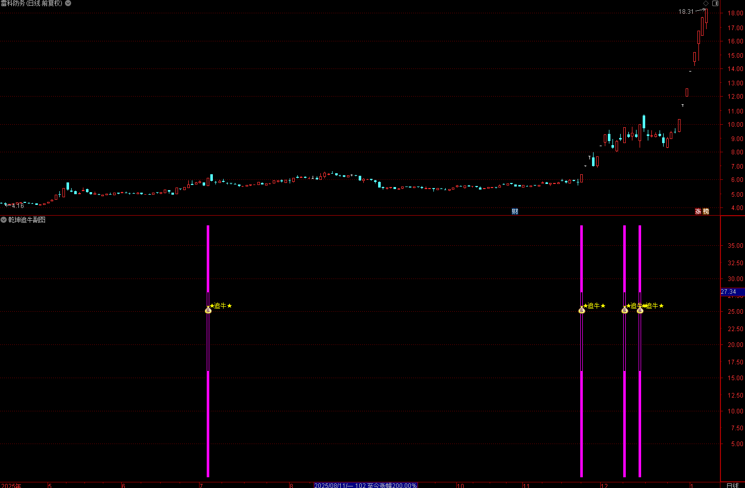 (通达信〖乾坤追牛〗副图/选股指标 识别和捕捉强势上涨的股票)