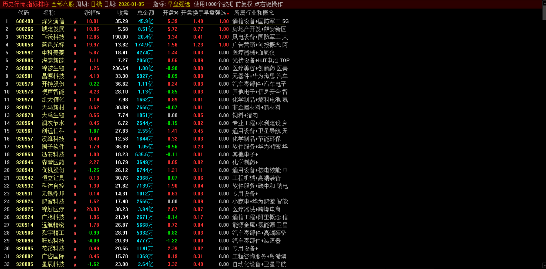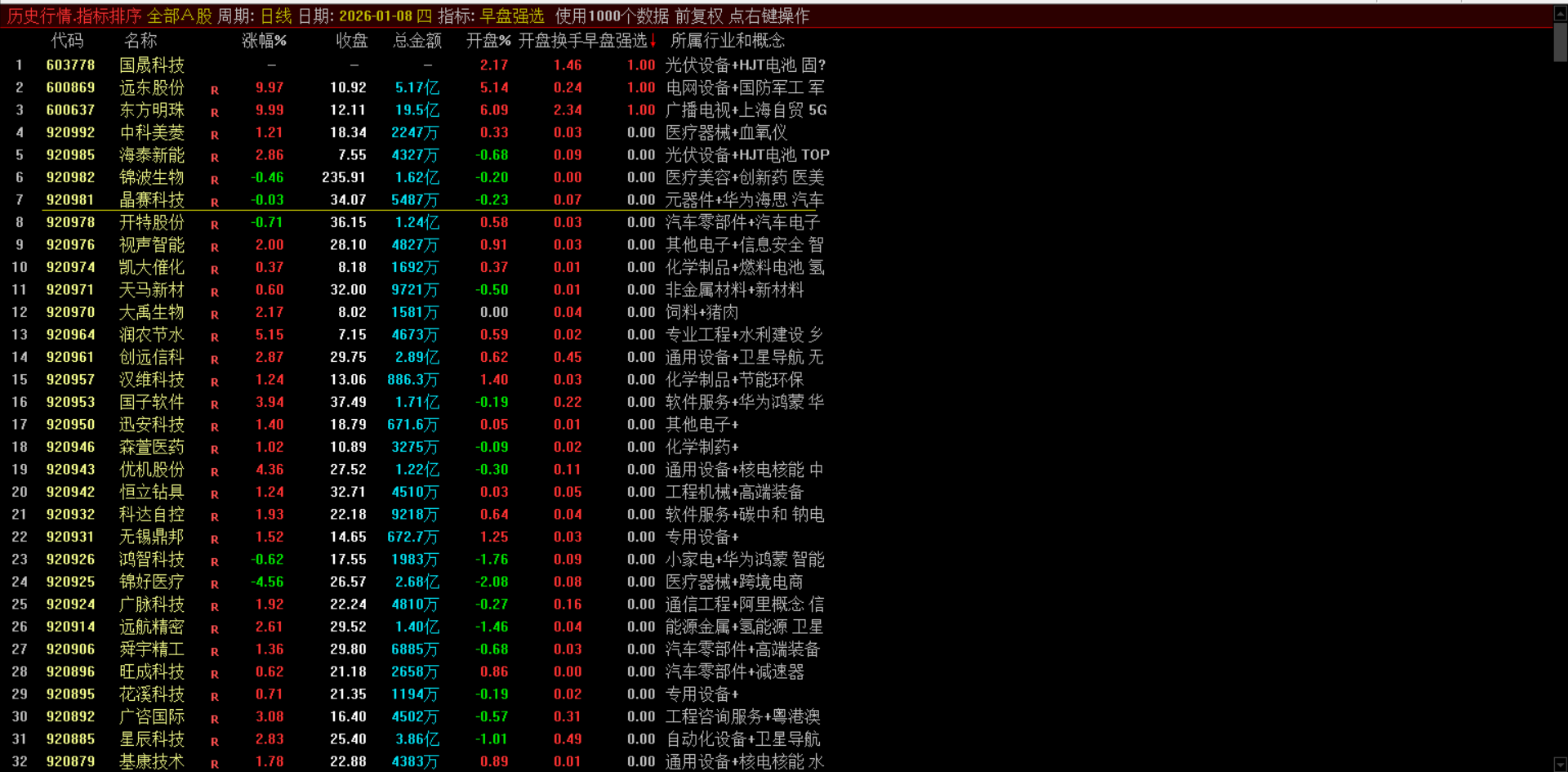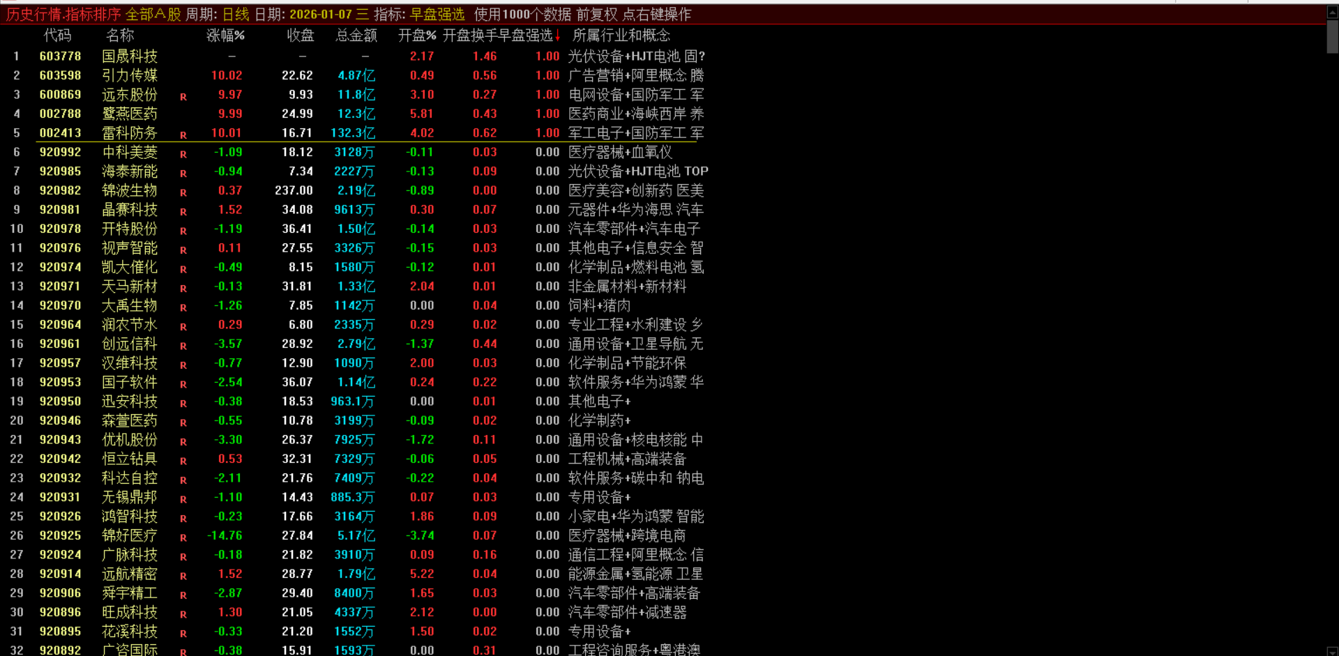 (通达信【早盘强选】专为早盘竞价阶段设计排序/选股及盘中预警选股 短线交易抓先手,就靠早盘强选定方向)