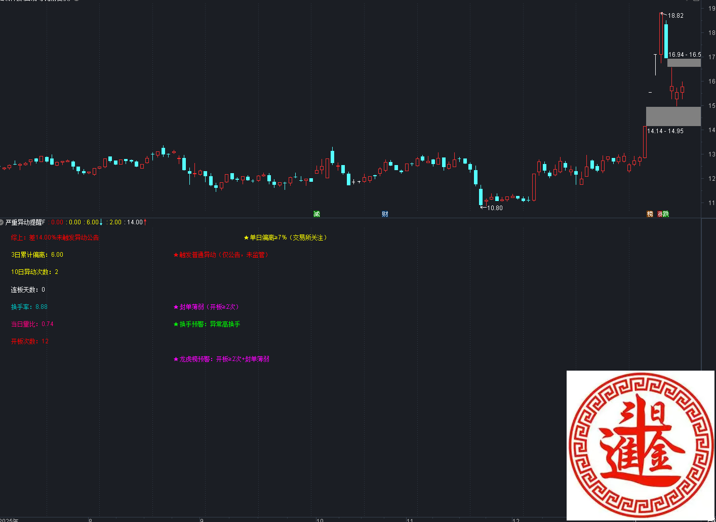 (通达信〖严重异动提醒〗副图指标 监管预警综合指标精准版 贴合交易所真实监管原则)