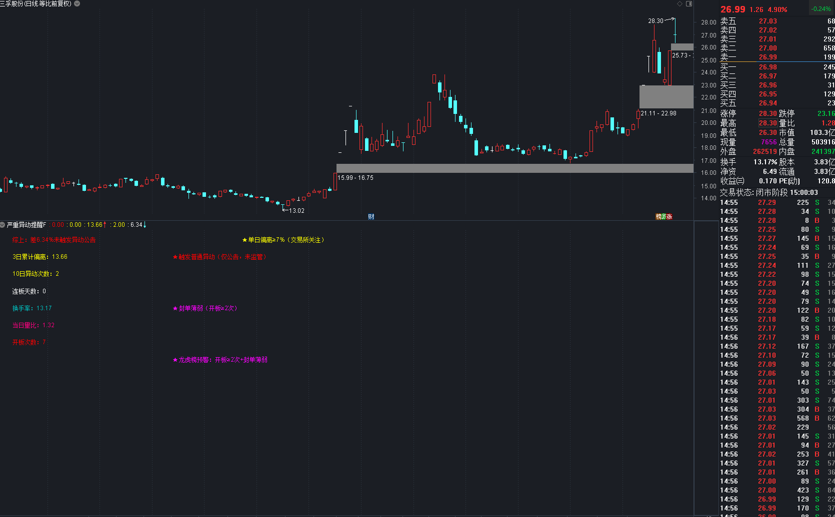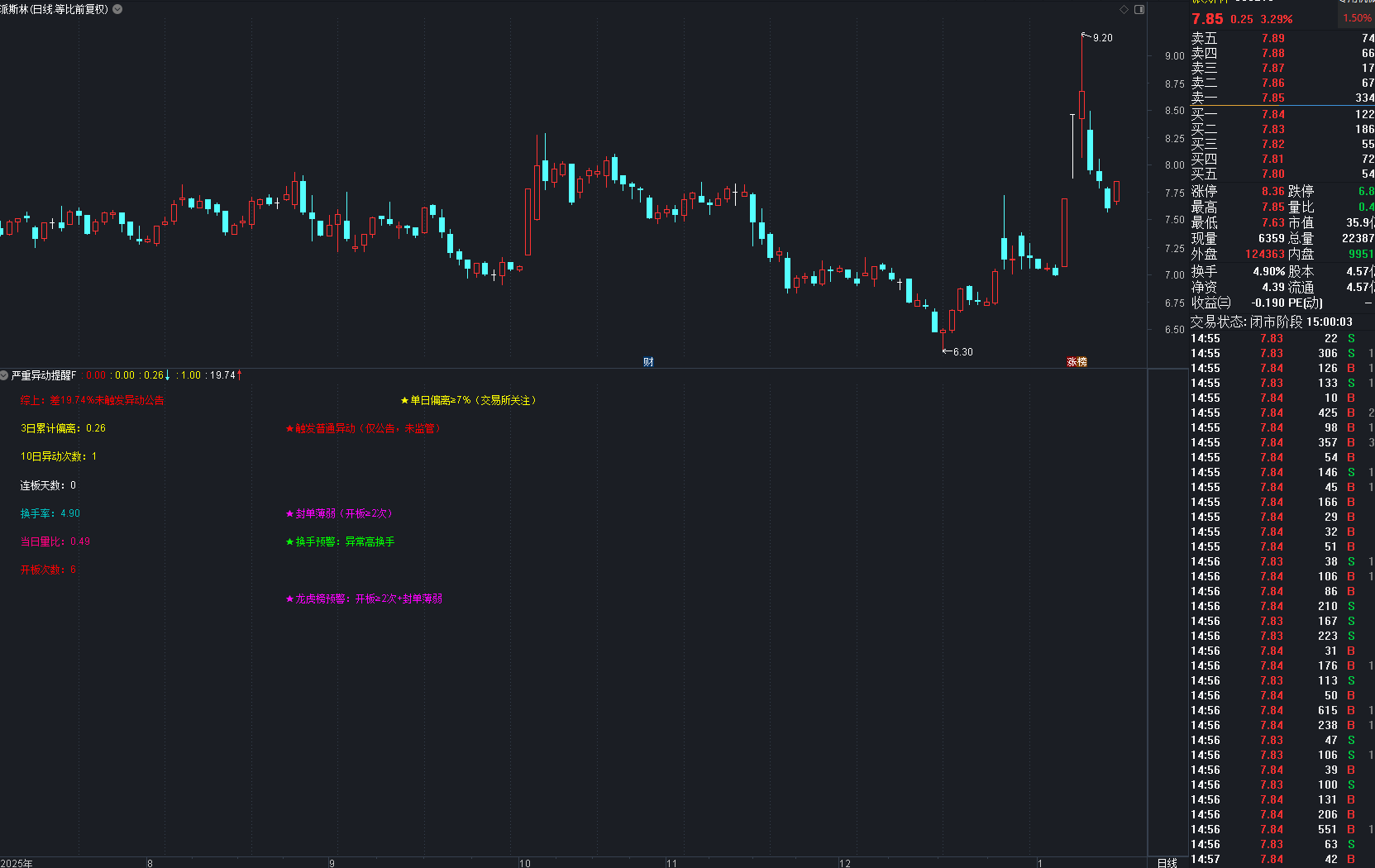 通达信〖严重异动提醒〗副图指标 监管预警综合指标精准版 贴合交易所真实监管原则