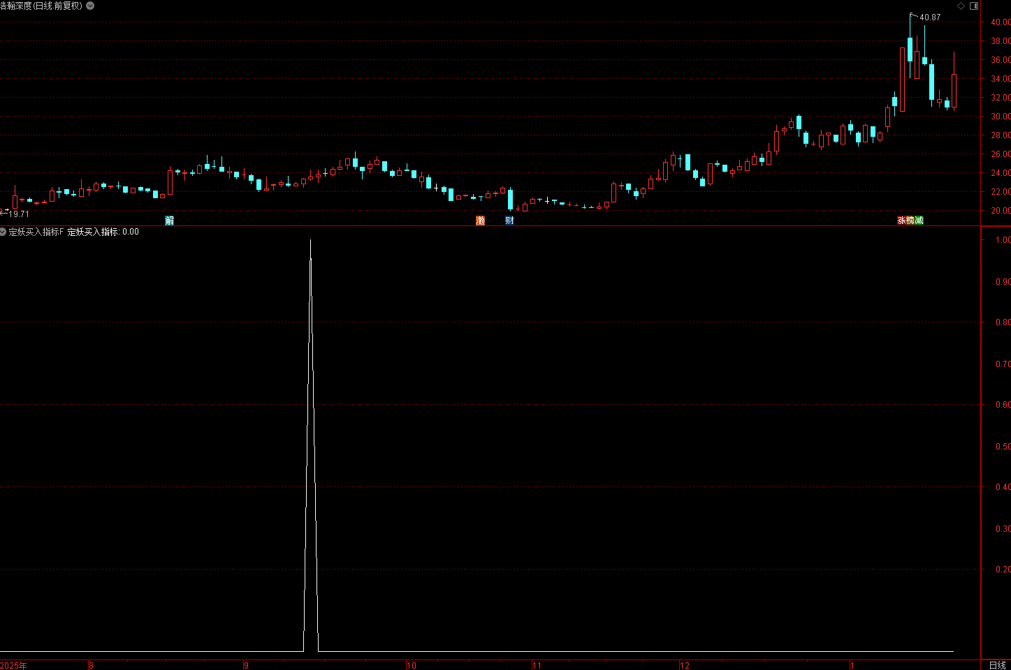 (通达信定妖买入指标,该指标的核心逻辑是“短期加速、趋势确认、风险可控”,聚焦妖股启动初期的低风险买入)