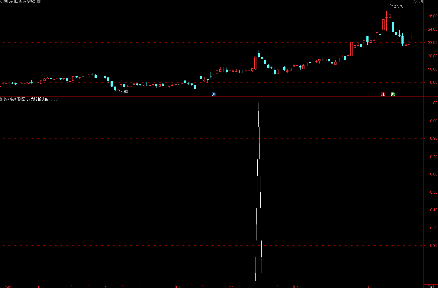 通达信趋势转折该指标的核心逻辑是“趋势确认、量能验证、信号过滤”,聚焦股价从弱势转为强势的转折节点,规避虚假转折与无量趋势,实现低风险布局: