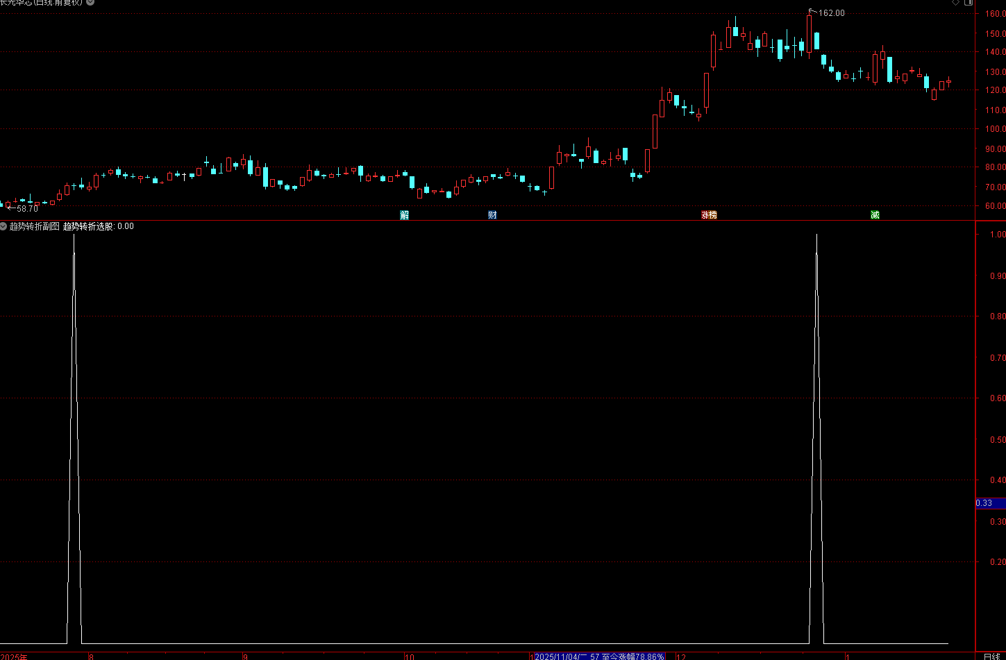 3. 量能验证:要求换手率大于5%(VAR12),确保趋势转折有充足的资金支撑,避免“无量空转”导致的虚假转折,提高信号的成功率;