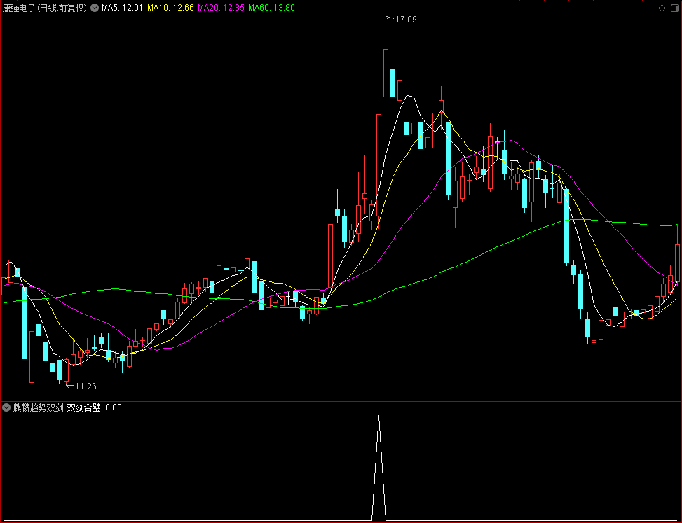 【麒麟趋势之双剑合璧】通达信麒麟双剑副图选股指标,源码