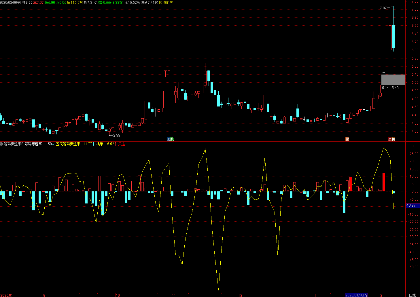 核心逻辑:穿透率 > 8 说明资金强势突破筹码区;结合换手率(>2%)或涨停(涨幅≥9.8%),确认资金入场信号