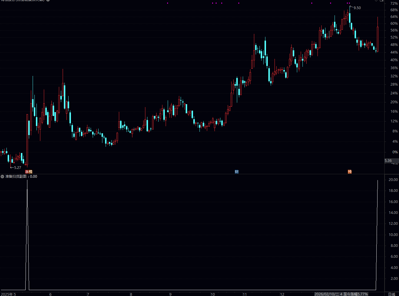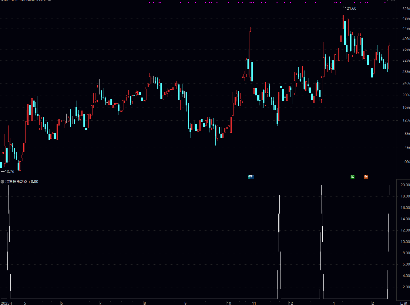 通达信扫货准备选股副图指标属于均线+乖离率结合型预警指标,核心功能是捕捉个股在中长期均线(30日均线)附近,短期乖离率修复、均线趋势转强、价格放量上涨的共振信号,提示主力可能完成低位吸筹,进入“扫货准备”阶段,后续大概率出现短期上涨行情。