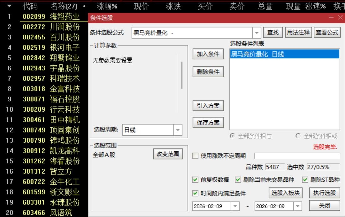 通达信【量化黑马竞价抓涨停】副图选股指标,山东某光导师的匠心之作,用过的都说好 颜氏高胜率指标 源码文件分享