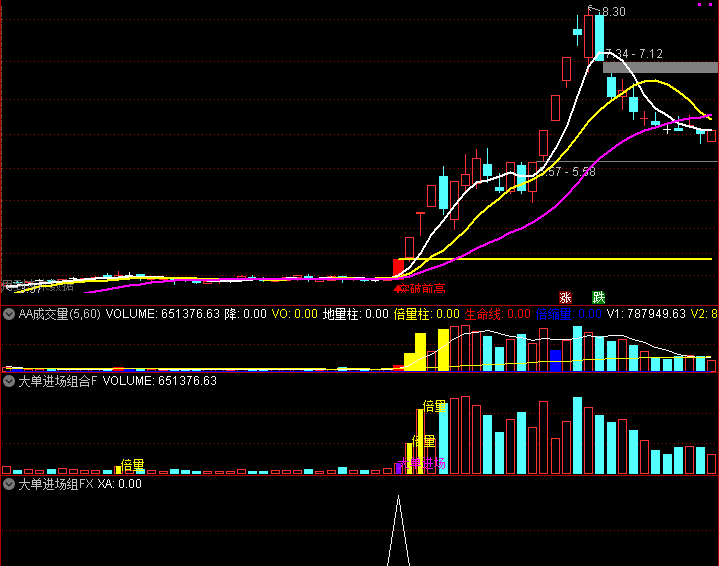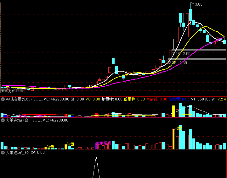 这个公式是一个捕捉“放量突破”信号的量价分析指标。改良的量价显示关系,副图信号:倍量=三倍量, 大单进场信号,配合区间突破