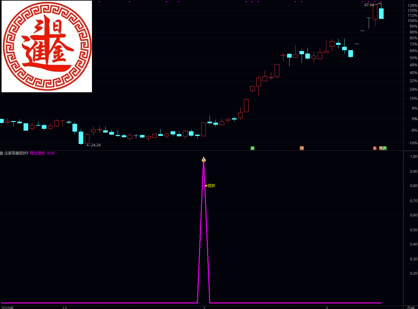 通达信庄家吸筹捉妖指标该指标用于捕捉短线强势股启动信号。