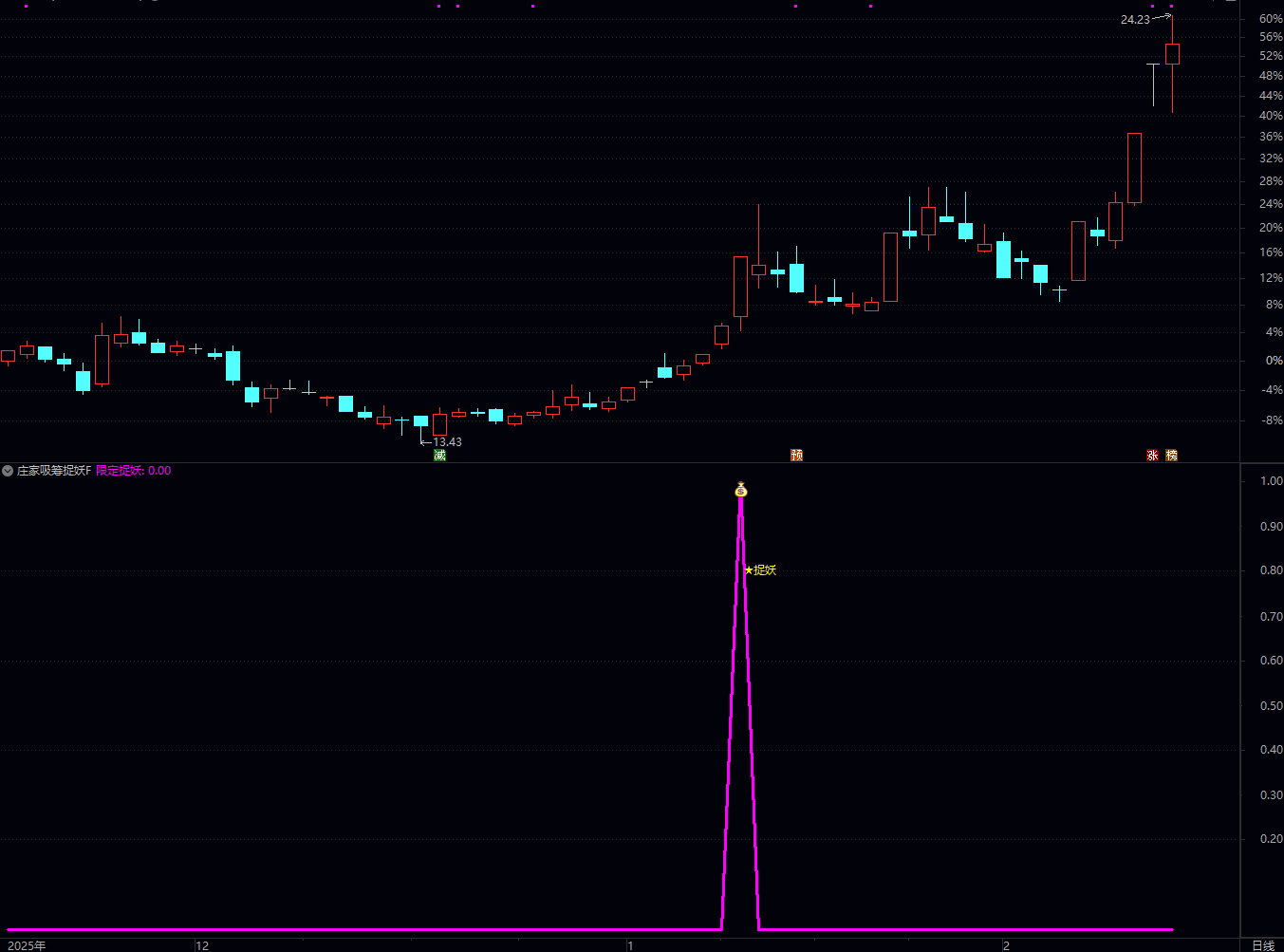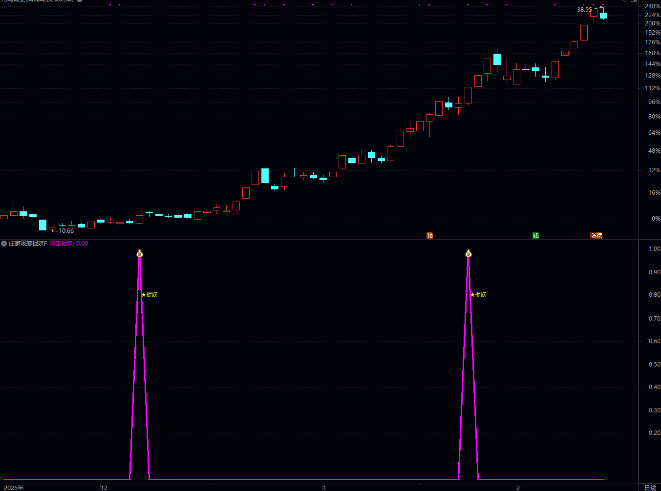 当三者共振时触发「捉妖」信号,适用于中小市值(65-125亿)且筹码集中(获利盘>20%)个股,需结合大盘环境与止损策略使用。