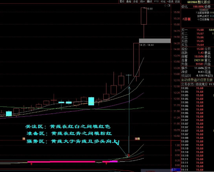 强势区:黄线大于青线且多头向上。