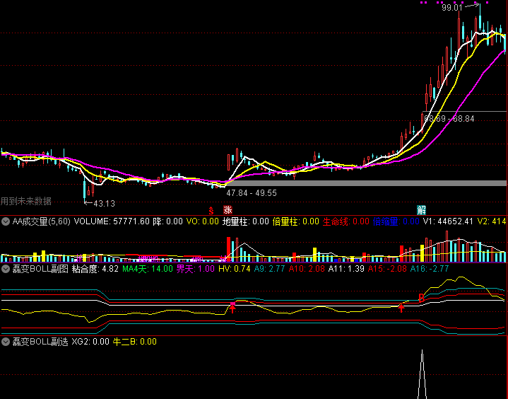 通达信 磊变BOOL 改编磊变布林 副图 选股 指标 划分了三个区域 一看就懂
