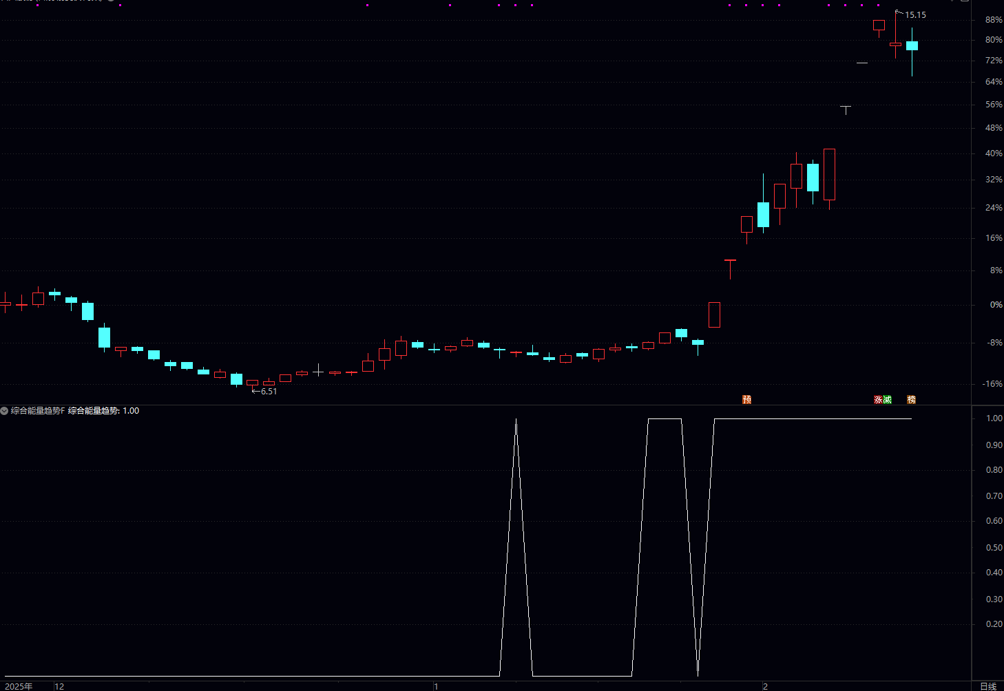 (通达信综合量能趋势指标公式提取核心做多信号:资金流入 + 做多趋势 + 强于大盘 + 未到高位)
