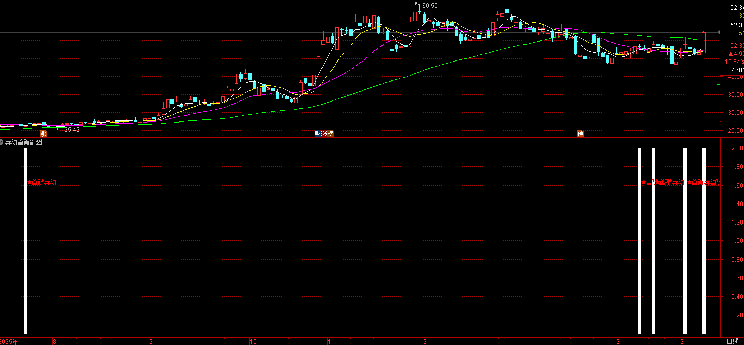 (通达信首破异动指标核心是构建 “首破异动 X” 信号,用于捕捉股价突破关键均线系统且量价配合的买入 / 异动机会。)