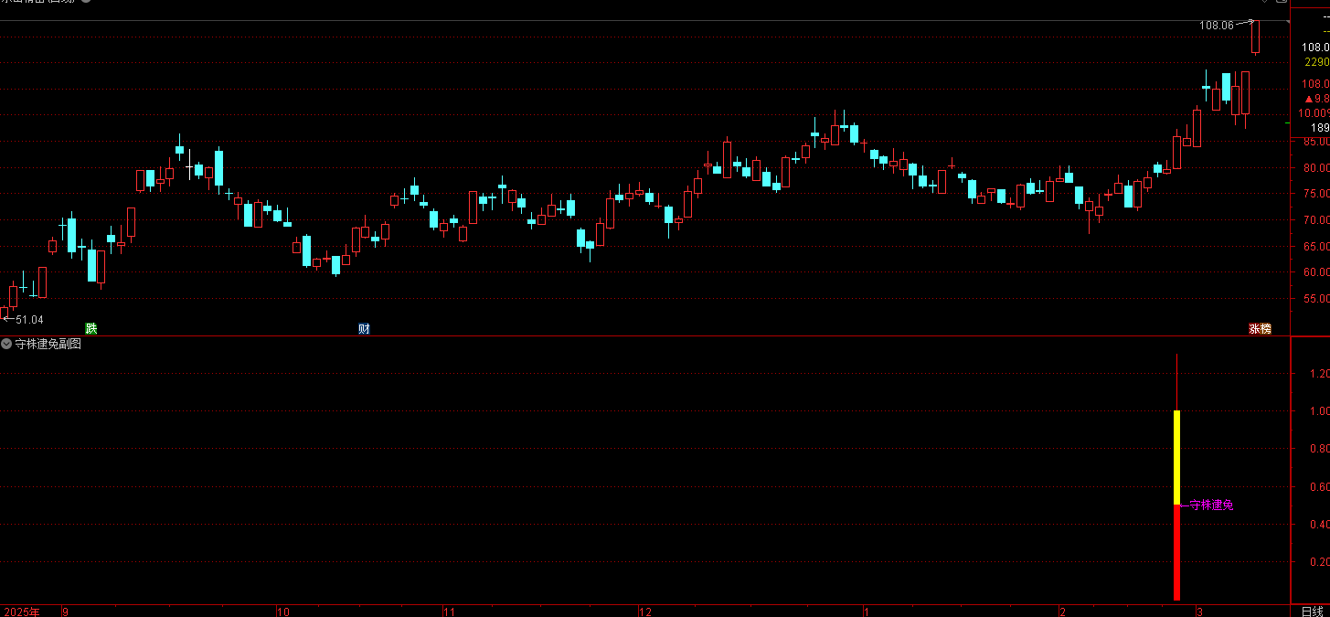 (通达信守株逮兔公式是一个股票技术分析选股 / 副图指标,核心逻辑是捕捉短期、中期、长期均线多头排列且均向上加速)