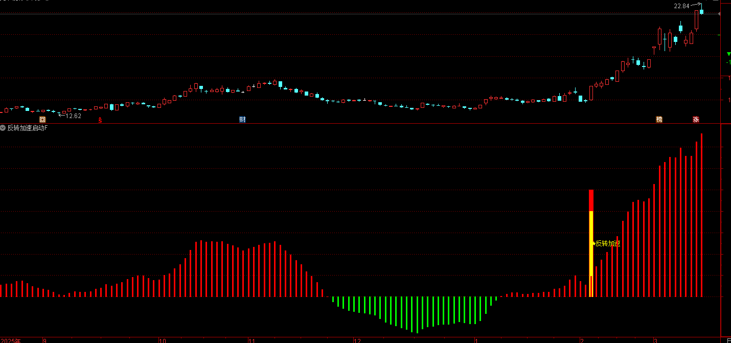 通达信〖反转加速启动〗捕捉个股在底部区域整理结束后,出现的“反转加速”上涨信号