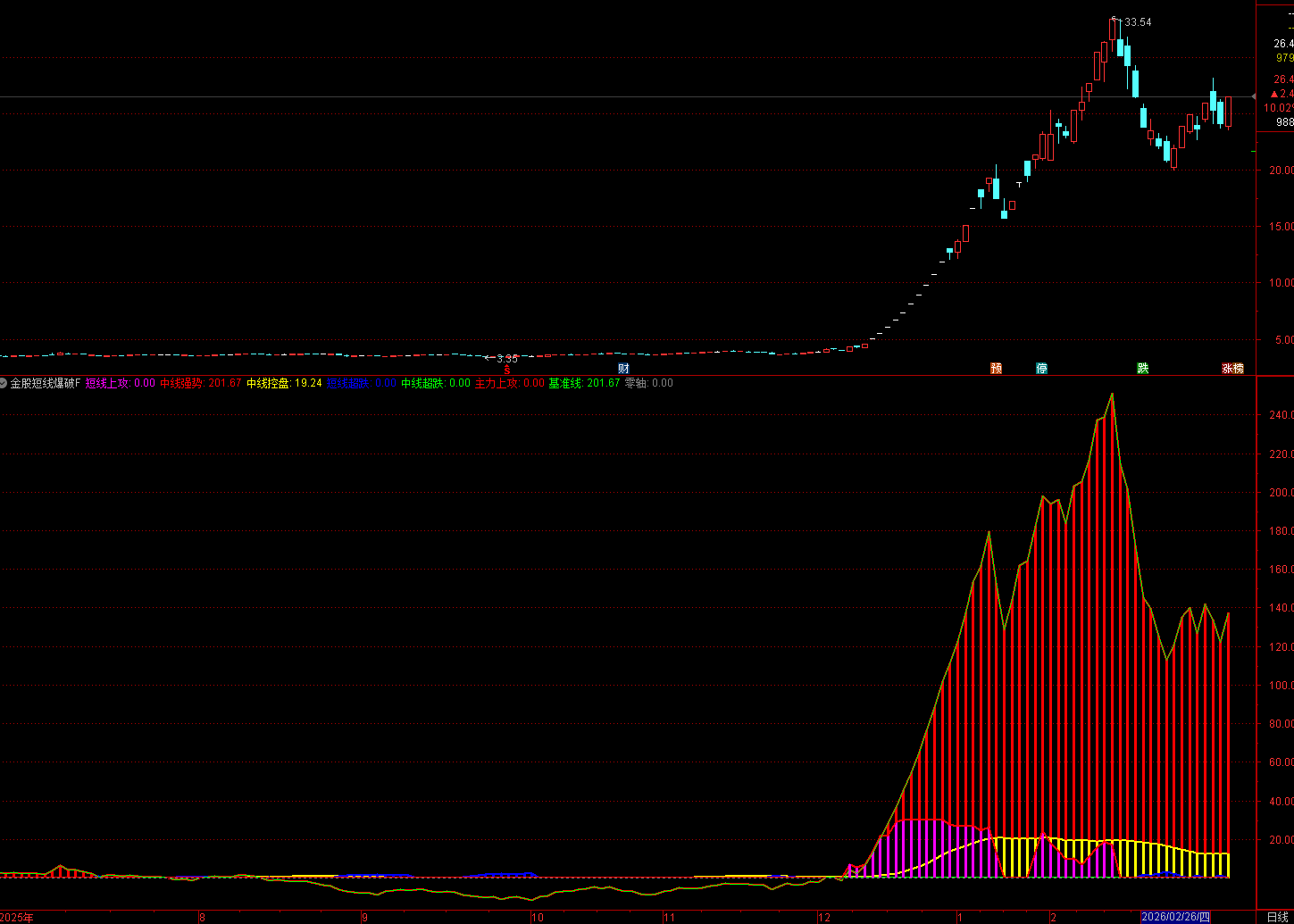 通达信金股短线爆破指标,该指标是一套多维度量价分析工具,核心围绕 “短线 / 中线的强弱、超跌、主力资金动向” 展开,通过不同颜色的线条 / 柱体直观展示股价所处阶段,适用于 A 股个股的日线级别分析。