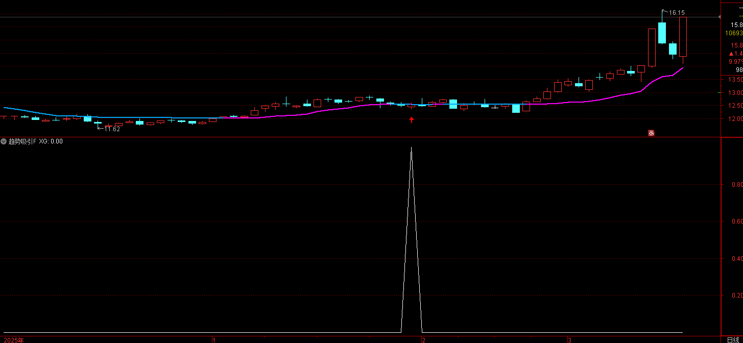 操作策略:只有当股价站稳趋势线之上,且短线指标在低位形成黄金交叉时,才发出买入信号。这旨在确保只在上升趋势的回调低点介入,避免在下跌趋势中盲目抄底,追求高胜率的反弹行情。