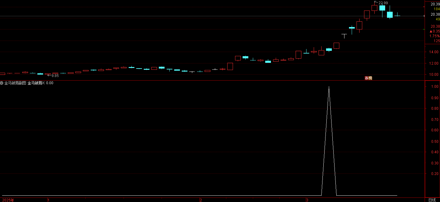 (通达信金马破局指标是一个抓涨停后暴力洗盘、洗盘结束、首次突破洗盘区的精准出击信号)