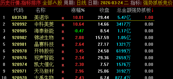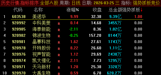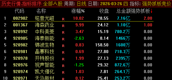 也可使用幅图指标“强势抓板竞价”进行排序筛选。