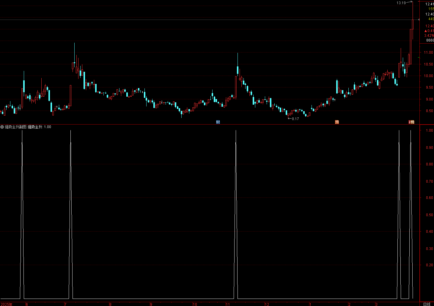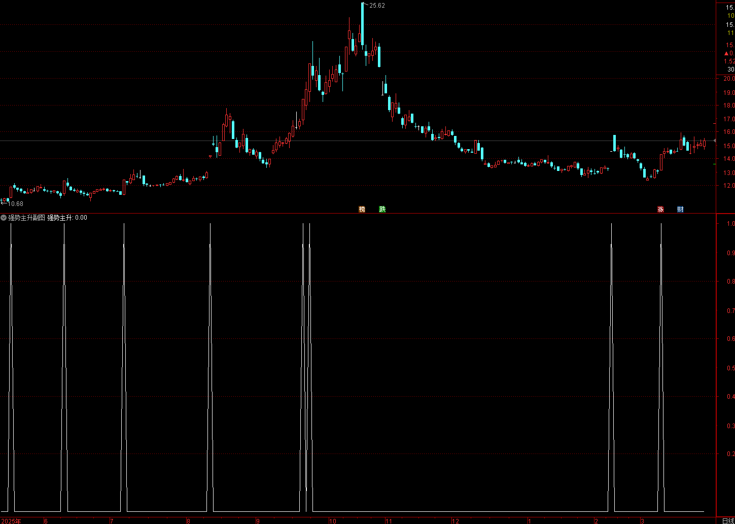 (通达信强势主升指标 依托KDJ指标判定多头趋势,要求K值大于D值、J值大于D值)