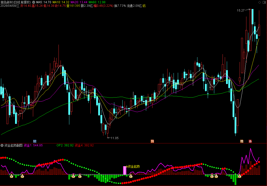 通达信主力进场指标公式是一个主力资金入场信号提示指标