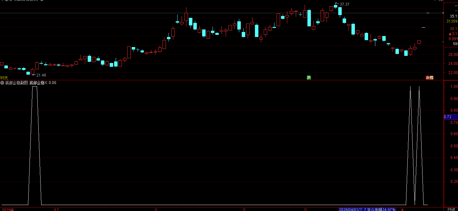 (通达信「底部企稳 」指标是一个超跌反转 + 放量启动型指标公式,)