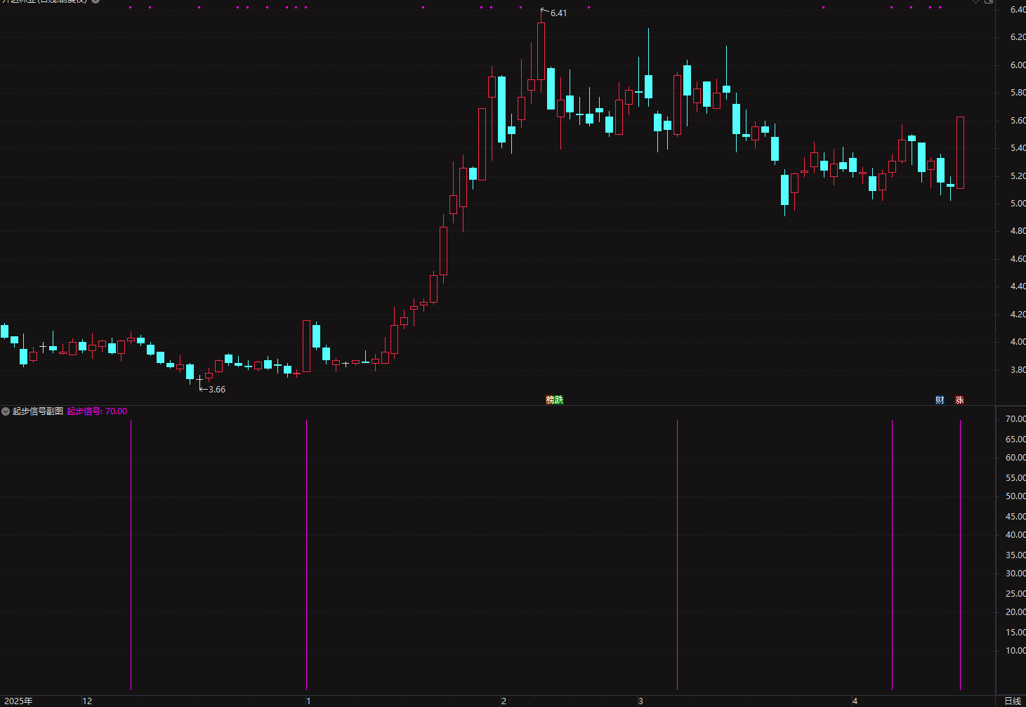 这是一个短线趋势启动类指标,用来捕捉股价从调整 / 低位开始拐头向上、进入上升段的启动点,适合做短线突破、趋势起步行情。