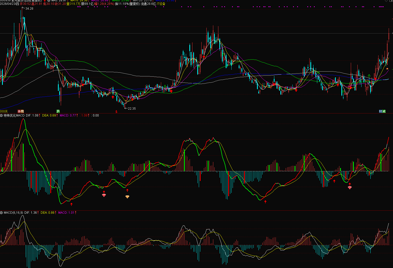 通达信MACD 优化版指标公式,在基础上增加金叉信号等