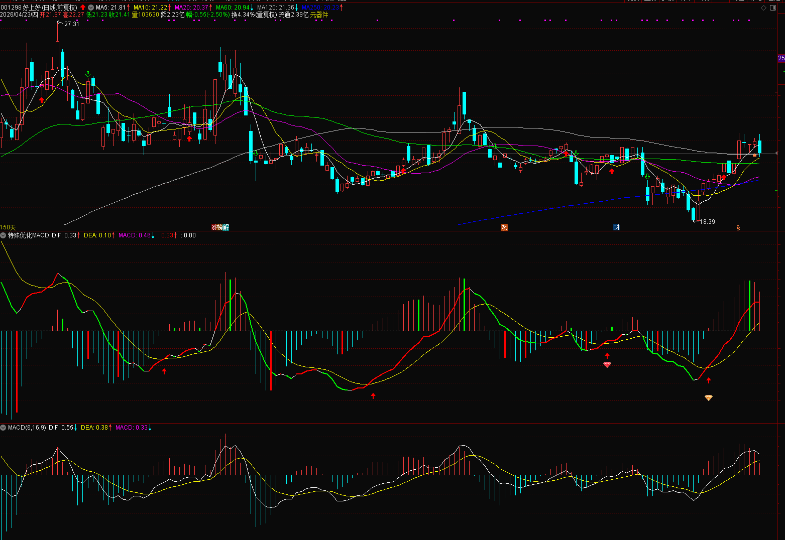 (通达信MACD 优化版指标公式,在基础上增加金叉信号等)