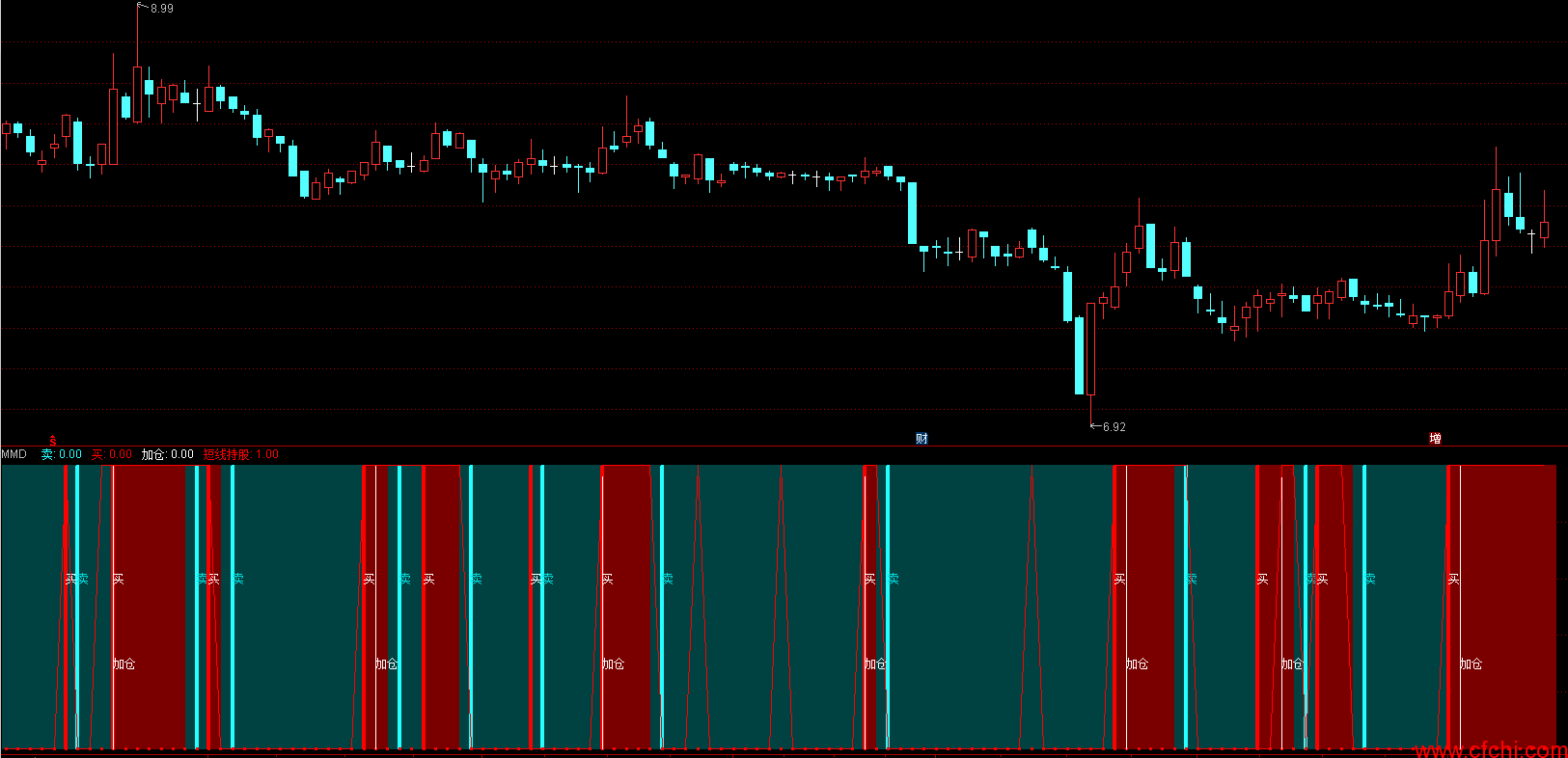 加仓:CROSS(MA(C,3),MA(C,9)) AND C>=REF(C,1) AND C>O,COLORFFFFFF,STICK,LINETHICK1;