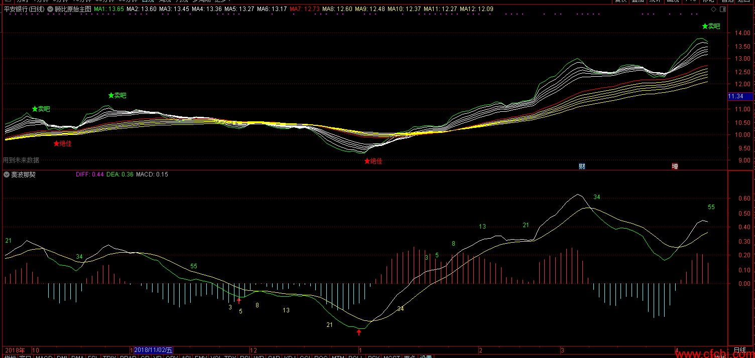 (通达信副图指标斐波那契MACD 源码 贴图)