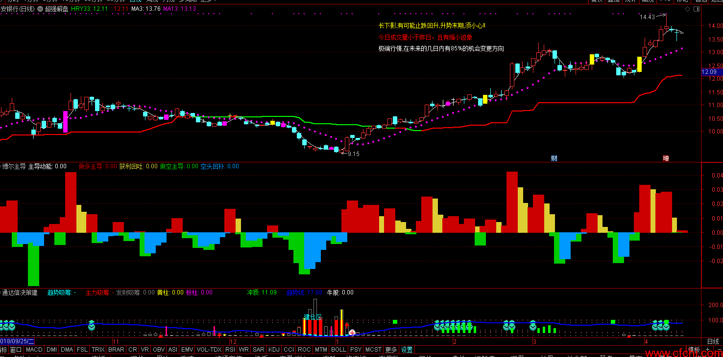 筹码穿越顶底,本人原创,在某指标网被评为精华指标,可以用于任何周期,做分时指标也极其有用,本人自用的之一