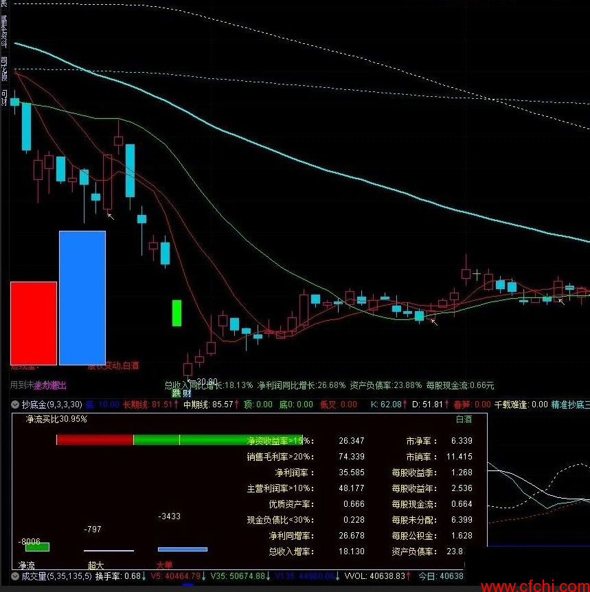 (通达信副图 资金净流买卖百分比+基本面财务组合 指标)