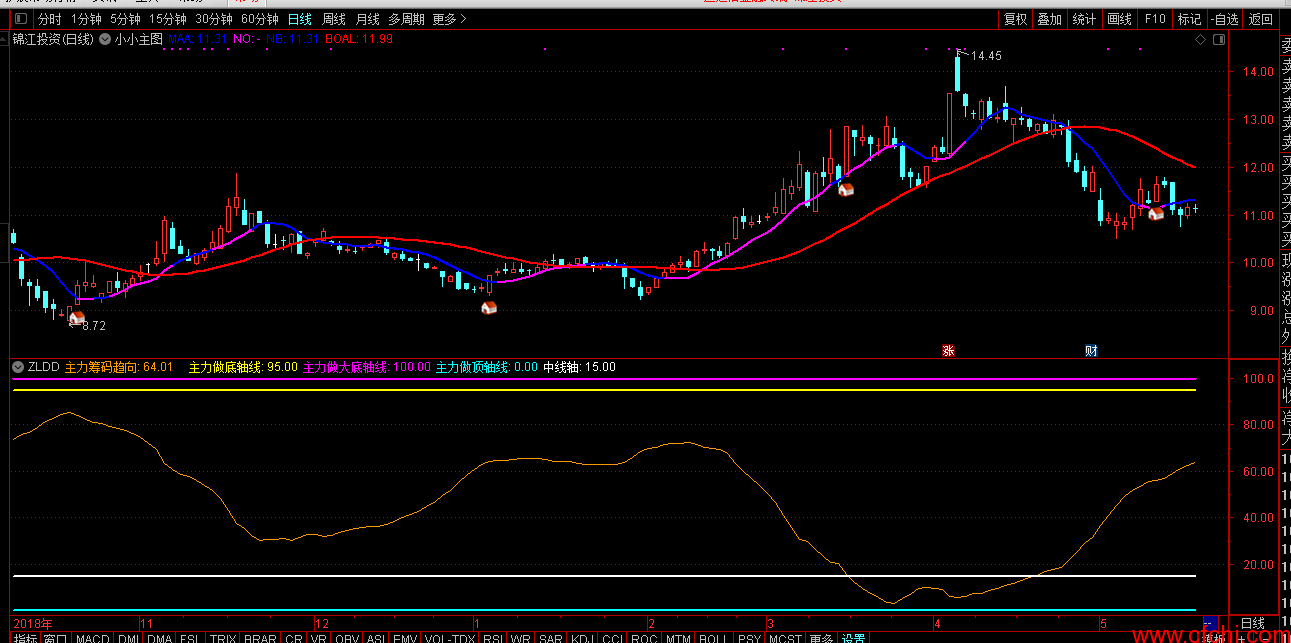 主力做大底轴线:100,COLORMAGENTA,LINETHICK3;