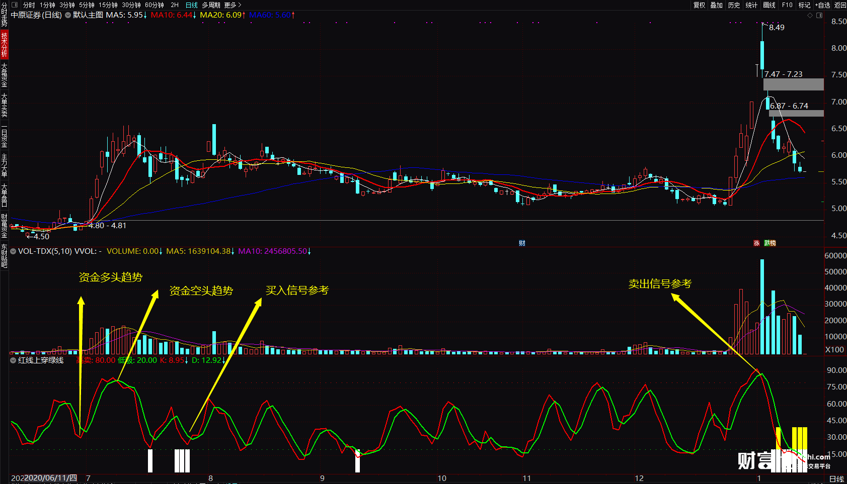 通达信主力资金控盘选股 红线上穿绿线绝对买点提示 副图 源码
