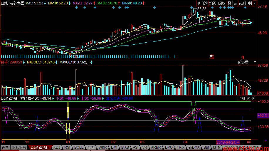 DJ通道指标 同花顺选股副图公式 源码 贴图