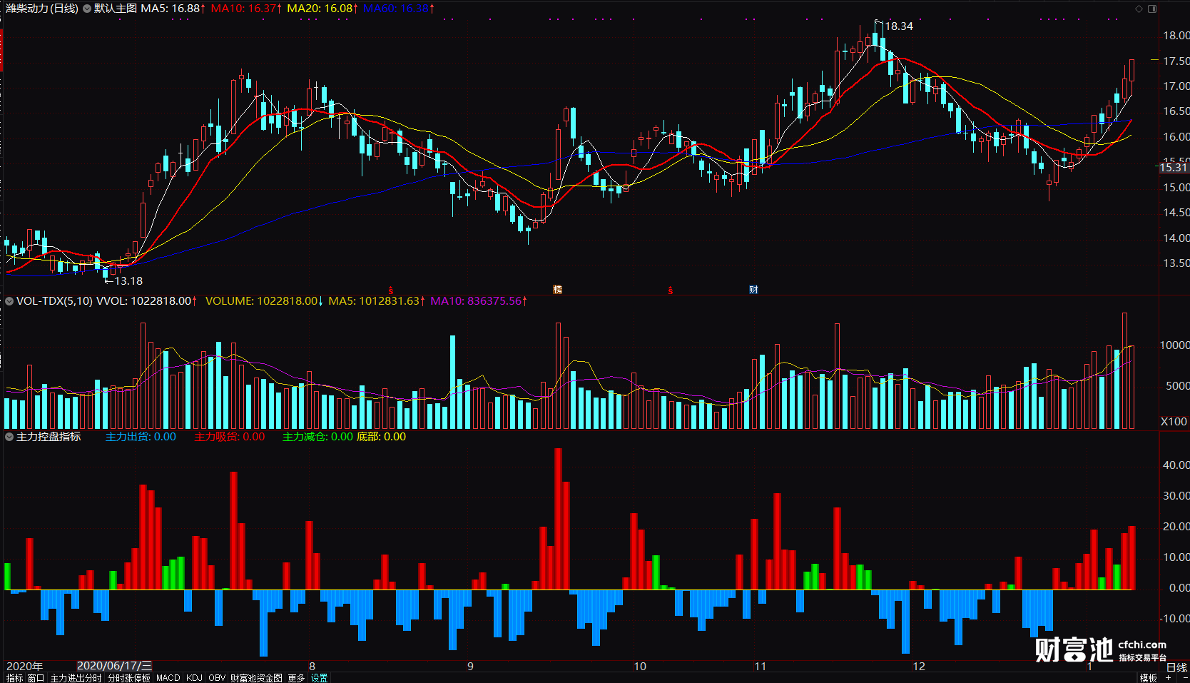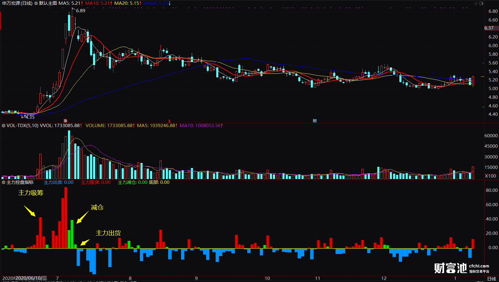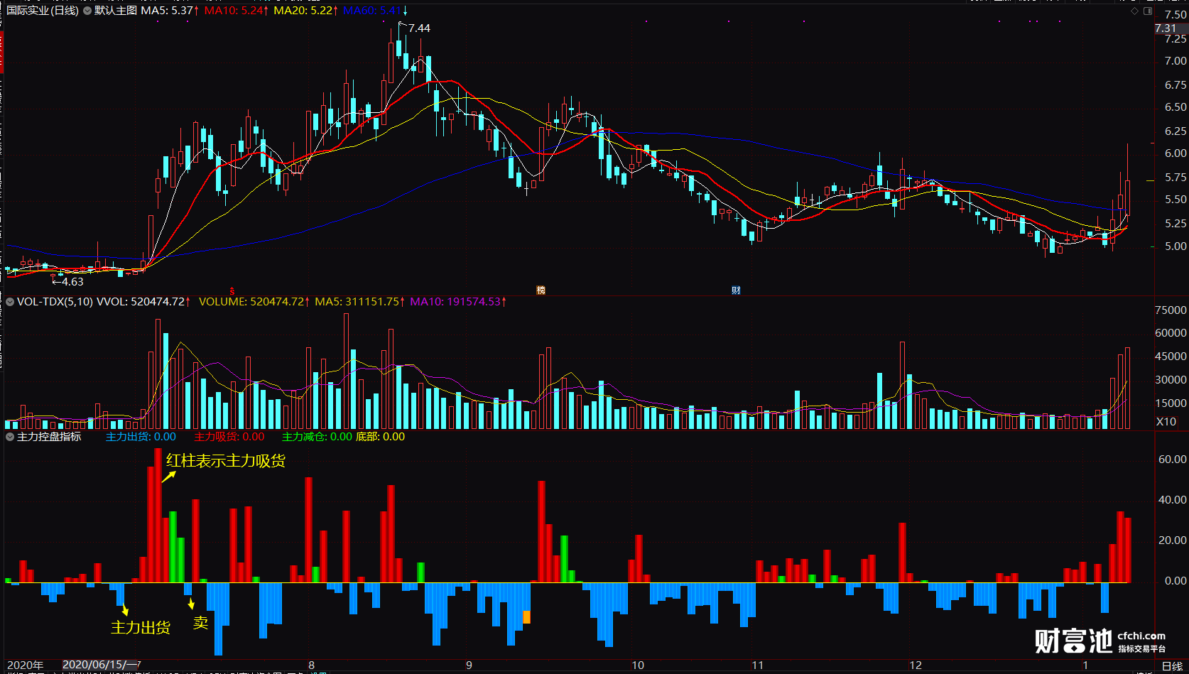 主力控盘指标 红蓝柱信号提示 主力吸货控盘减仓奥秘 副图 源码