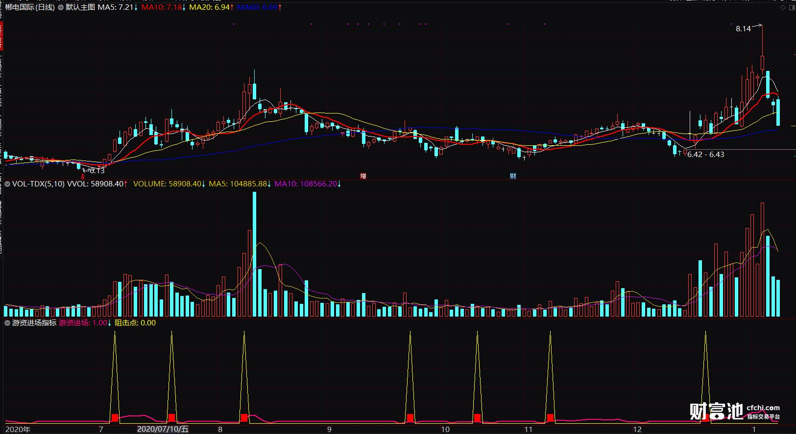 超短线游资进场指标,一个捕捉强势妖股起爆点指标, 炒股想盈利,不在于你多么的渴望,多么的想财富自由,也不在于你多么的勤劳,多么的夜不能眠,而在于你的方法在不在那个点子上,知不知道主力的行为,为什么有的位置涨了还涨,有的位置跌了还跌,而有的位置却跌不下去。一个识别主力和游资同时进场指标公式分享给广大投资者