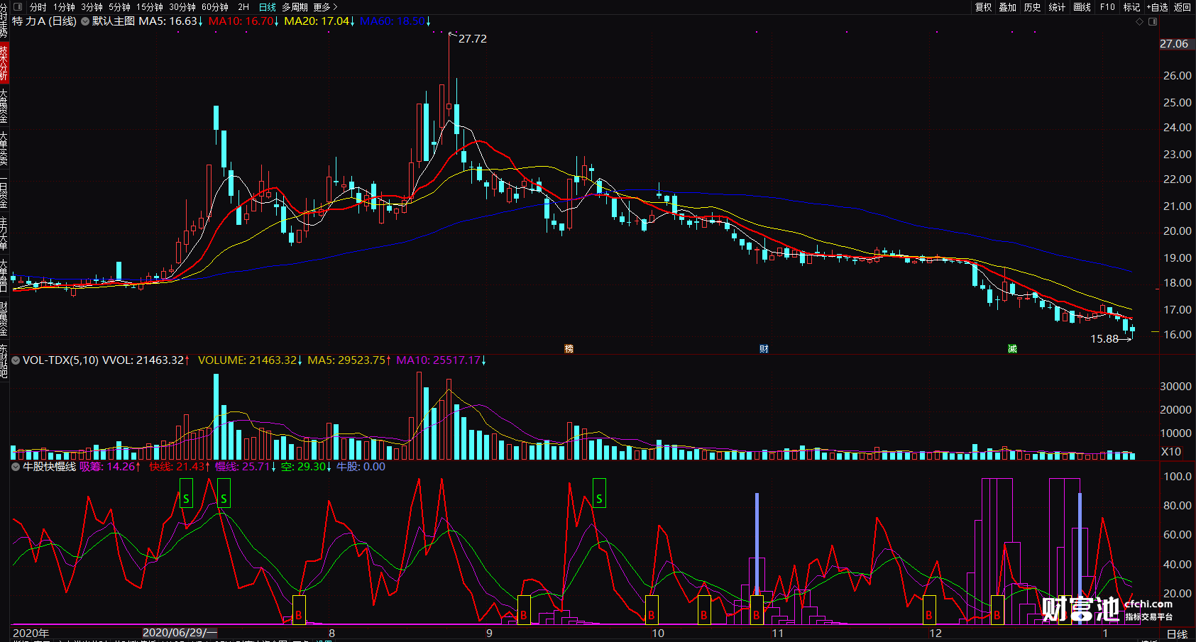 最简单的方法就是看副图指标信号标识,当出现“B"结合成交量入仓,这可是短线散户的绝佳买入点,预示着这个股票上涨的趋势,这个时候买入,可能会赚得更多!当信号出现”S“为卖出信号,此时要关注趋势走向去股持币!