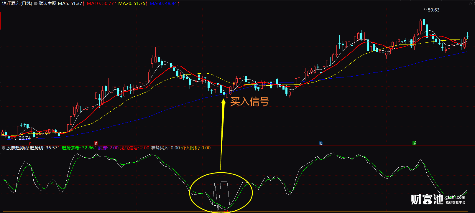 (通达信自动画趋势线的指标 买入必涨 黄金趋势线指标选股公式 副图)