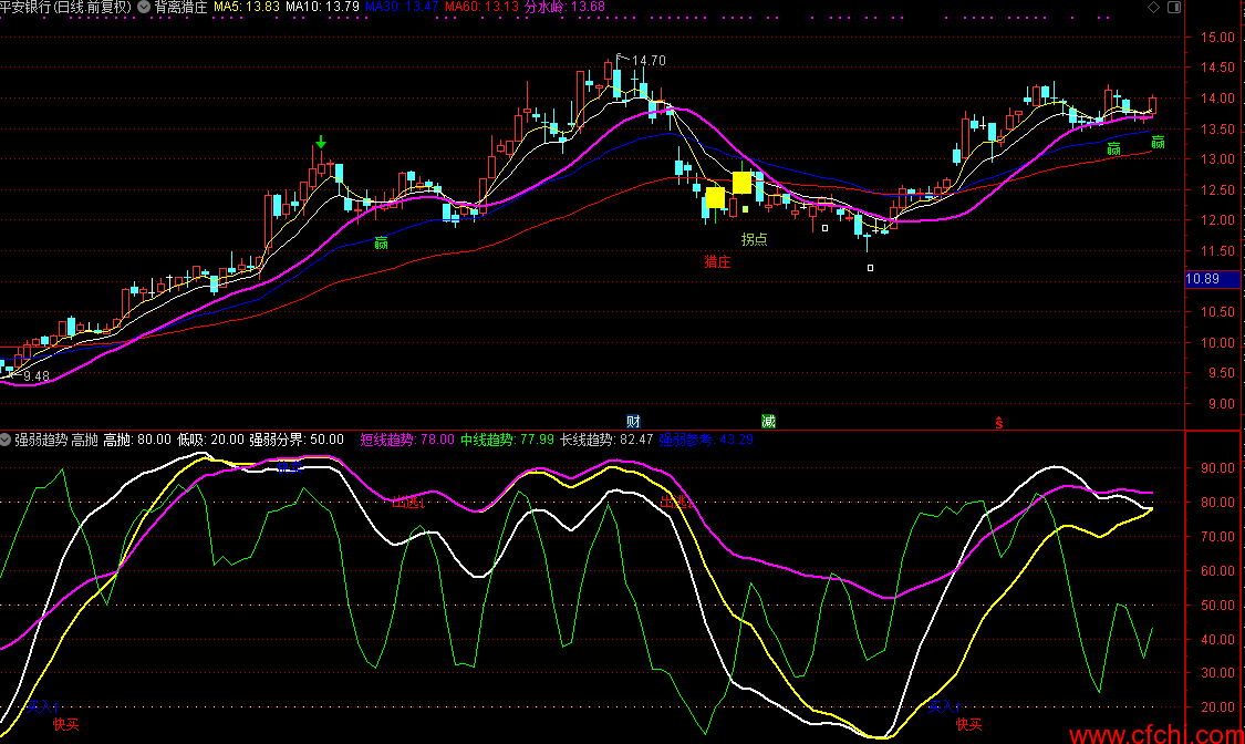 强弱趋势 高抛低吸 通达信选股公式 副图 源码 贴图