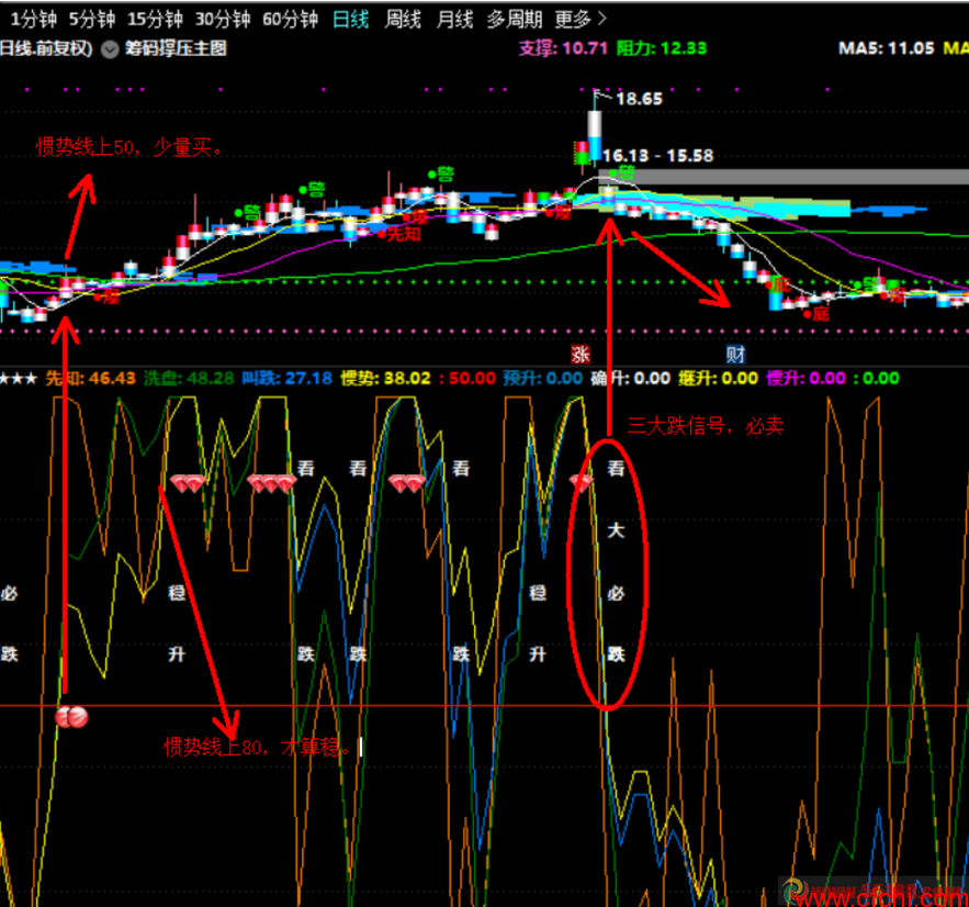 十拿九稳是惯势。,就是说,最后定调是惯势线,惯势线上50或者80,至少可以博一个一夜情,是稳升信号;而一旦惯势线跌破50或者80 ,则是必跌之势。