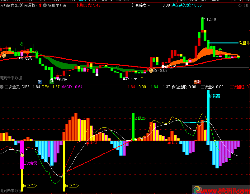 1、对MACD公式进行整合提取,自己做的副图公式,有兴趣的可以改成选股公式。