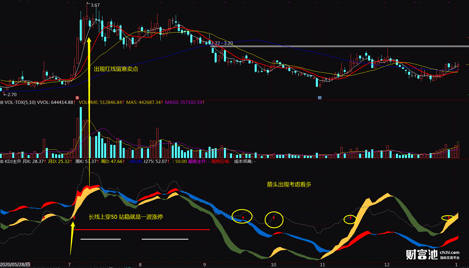 (通达信kdj主升指标公式 优化kdj捕捉涨停版 选股指标公式 副图)
