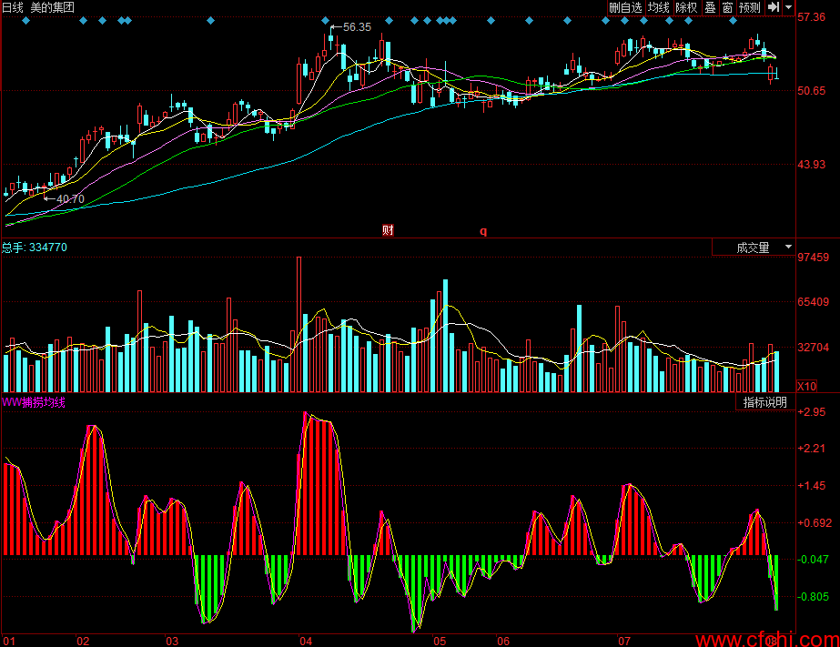 (WW捕捞均线 同花顺公式 副图 源码 贴图 (K线图))