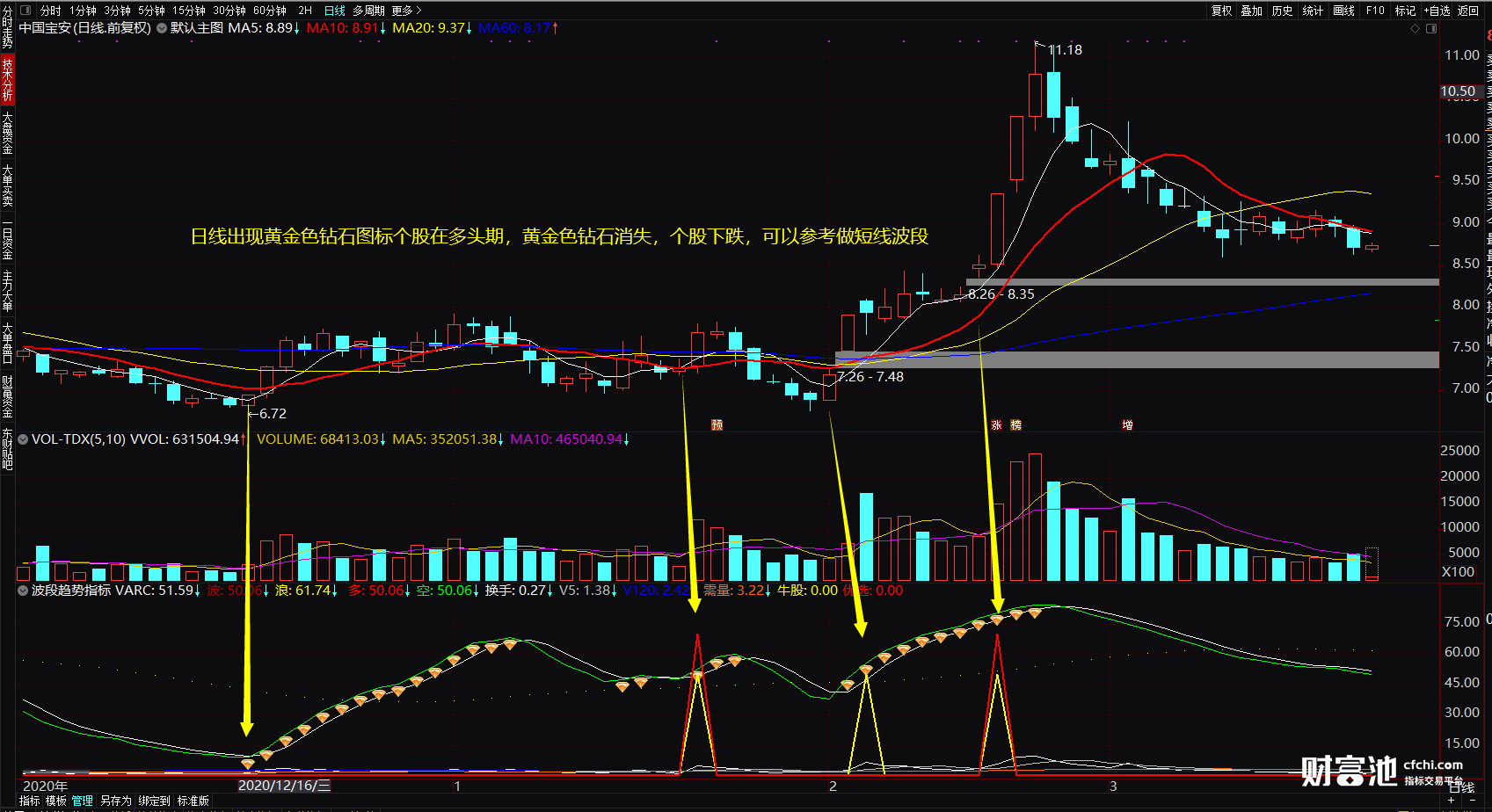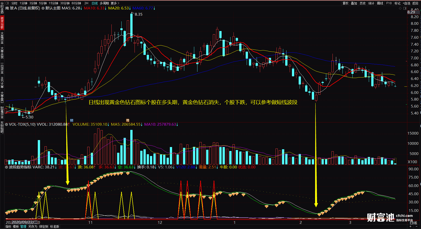 (一个有牛股提示的波段趋势指标-精准教你牛股怎样做波段,黄金多头波段的指标公式 副图 源码)