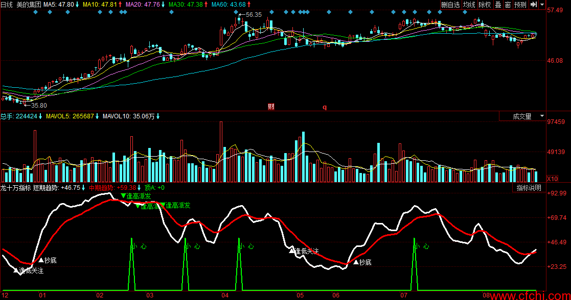 抄底逃顶-龙十万指标 同花线 选股指标 副图 源码 贴图 (K线图)