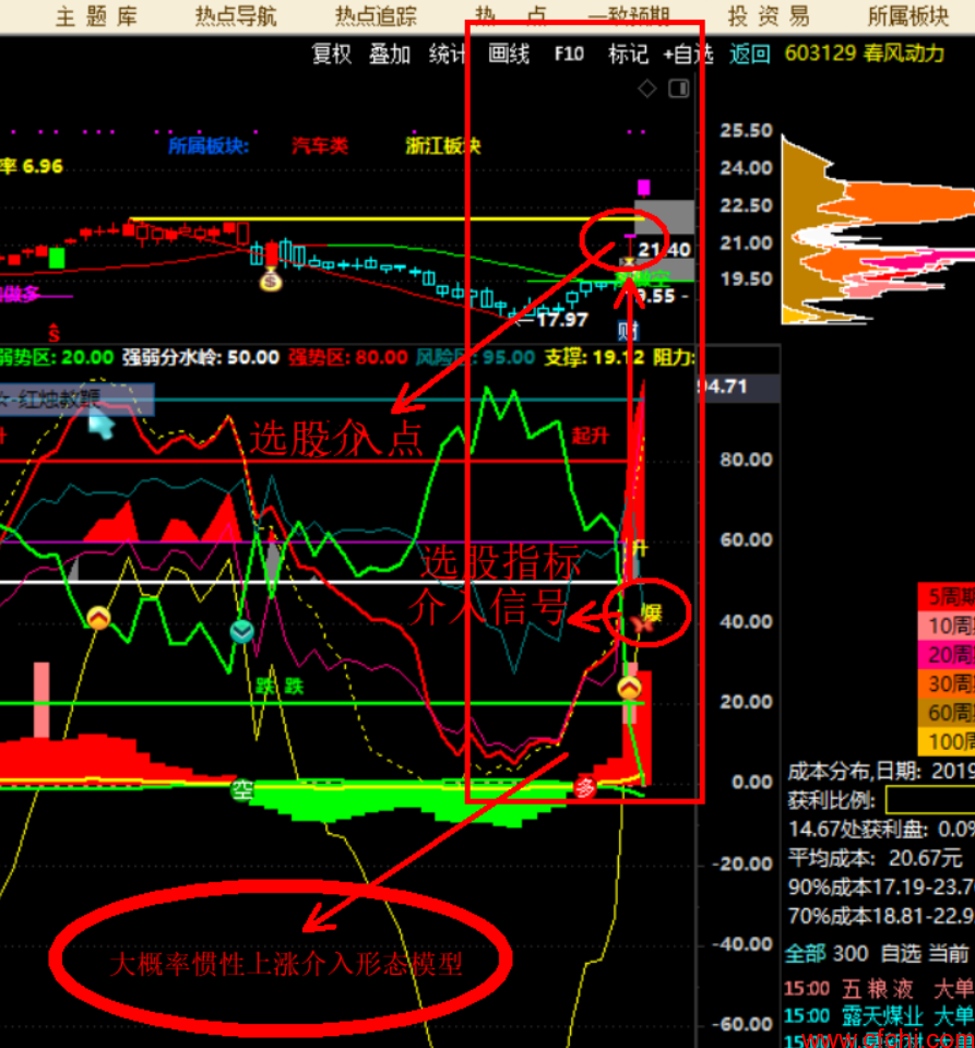 对指标运用的总结:①碰到一个指标,一定要能找到这个指标的介入点,也就是买入条件,表现在图形上,就是模型,出现什么样的搭配模型,就可以考虑介入,如果处于这一模型,任他股价上蹿下跳,我自岿然不动,稳健持仓;②明确卖出出局原则,通过反复查看这一指标,出现什么样的形态模型,股价必然下跌或回调,一定要记住,一旦这一模型呈现,坚决建仓或出局,不存幻想,无论庄家怎么装腔作势做多,或者后期偶然冲高,也不后悔,不被假象迷惑。③找到这一指标的极端模型,也就是高概率模型,比如连板,大调,大跌信号模型,出现这一模型,采取相应行动。④以上三个要点建立在这个指标在翻看过往大多数股票都能准确预测股价的情况下,也就是说,你要对这个指标的个性有较为深入的了解,确定这个指标是一个“讲真话的人”。